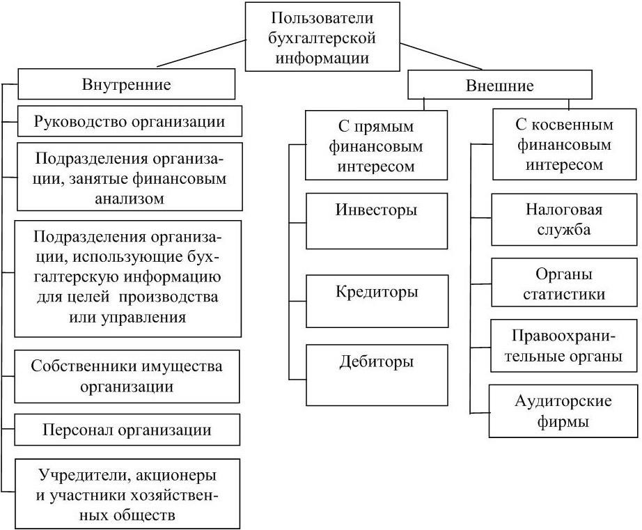 Вся совокупность пользователей бухгалтерской отчетности делится на две большие группы: внешние и внутренние пользователи.