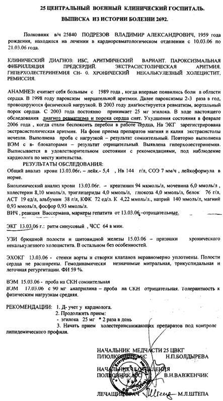 ральный порок сердца, диагностировали ревматизм сердечной мышцы, ишемическую болезнь сердца и другое тому подобное (рис. 5). Лечащий врач, женщина, при выписке, уже в коридоре лечебного отделения с нескрываемым сочувствием советовала примириться с создавшимся положением, не падать духом – ведь оставшуюся часть жизнь предстояло провести в условиях существенных ограничений (в частности, физических нагрузок) и регулярного приёма лекарственных препаратов.