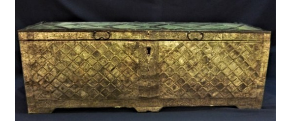 Ил. 2. Сундук. Конец XIX – начало XX века, Екатеринбургский уезд Пермской губернии. Дерево, жесть, «мороз» по жести, литье, окраска, тиснение, гравировка, столярная работа (частное собрание).