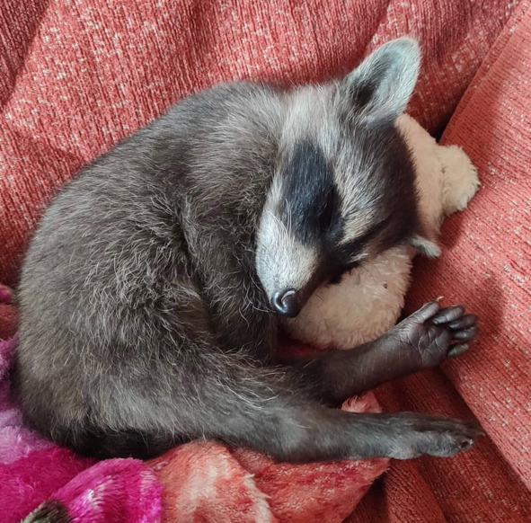 Глазки закроет, лапки прижмёт – спит до утра наш Федя енот