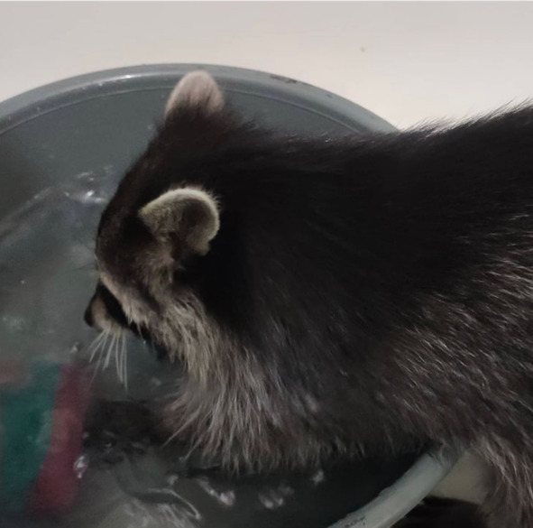 В миску с водой свои лапы опустит, нос свой поглубже он в воду запустит
