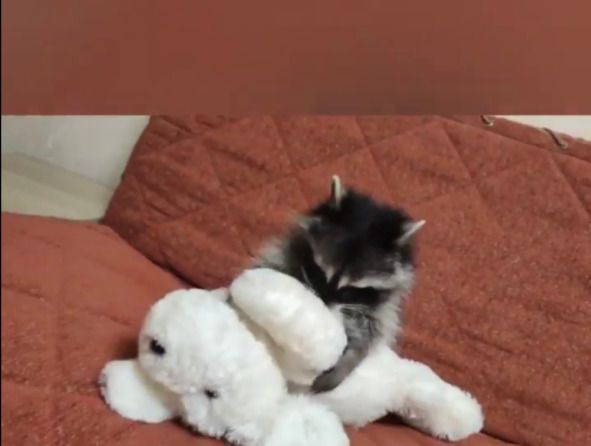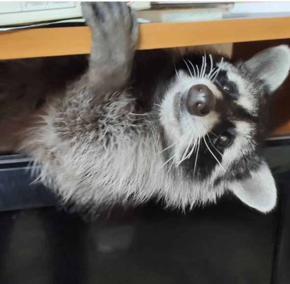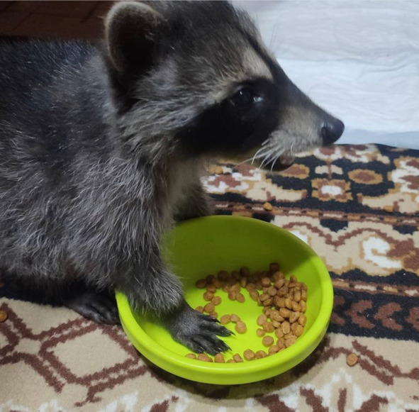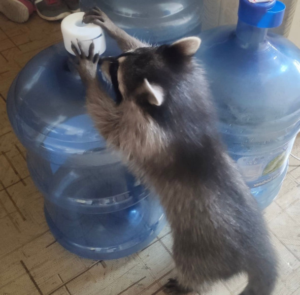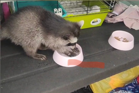 Тут прицепился какой то пакет – все не на месте, чего то да нет. В кухню добрался Федот наш енот – встал, огляделся, и на тебе вот