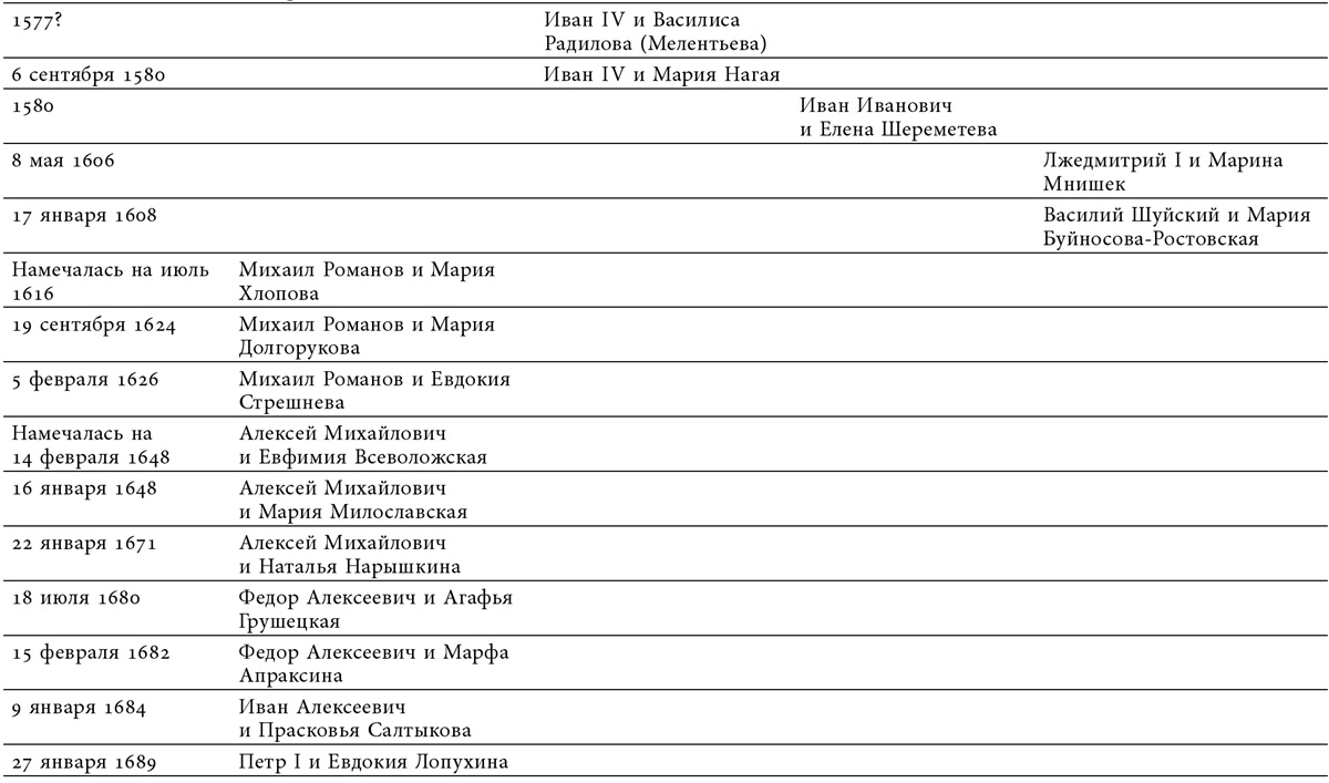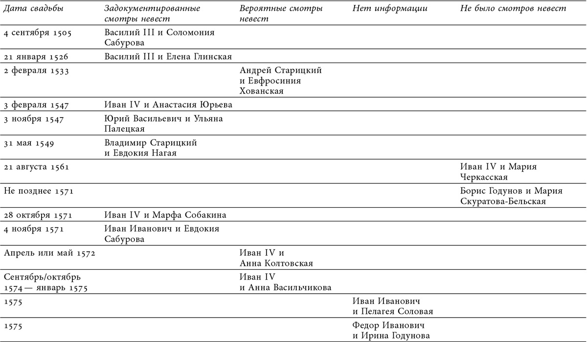 Таблица 1.2. Смотры невест в Московии, 1505–1689 годы
