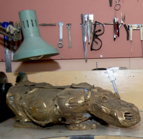 Не осталась та первая скульптура и на снимке. Не было тогда смартфонов. Да и фотоаппарата под рукой у студента тоже не было. В восьмидесятые годы художник создаст цикл графики «Постуиндустриальные зарисовки», где переплетаются фантастические конструкции с реальностью. Позже скульптор создаст – уже из бронзы – серию «Механический зоопарк».