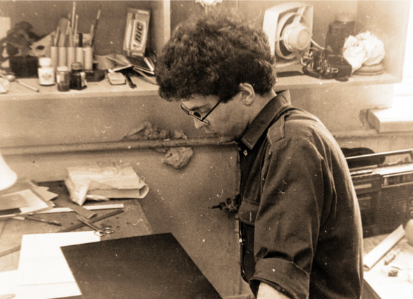 Техника раскрашивалась гуашью, от чего изделия больше напоминали настоящую технику. Еще – все же сын архитектора – Андрей смастерил из ящика, в таких отправляли посылки, комнату. Для этого одну стенку у ящика убрал, создал внутри планировку, стены покрасил, провел электричество – из маленьких лампочек, что были в фонарике. В таком жилище было вполне уютно маленьким «человечкам». Графические работы по-настоящему захватили молодого художника, когда он стал студентом архитектурного института – в начале восьмидесятых. Поступил на промышленную архитектуру. Рисовал прямо на лекциях, которые занимали большую часть дня.