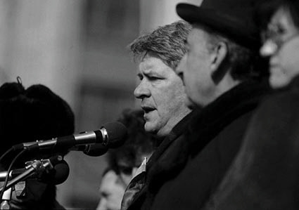 Народный депутат СССР Юрий Афанасьев на митинге москвичей в поддержку политики Бориса Ельцина и российского референдума.