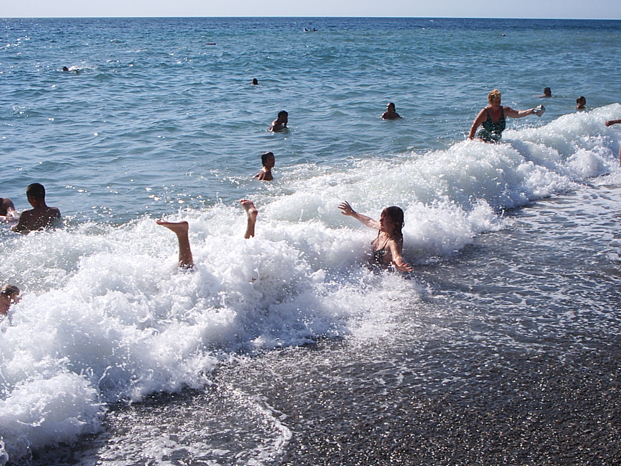 Правда, стихия чуть было не привела к трагедии, одна мамаша потеряла своего ребёнка и с истерическим криком искала его в море, а мальчик тихо стоял на бетонном пляже и в море даже не заходил, и всё окончилось благополучно. Дополнением к этому развлечению, стало то, что в море я нашла одну гривну, и это были мои первые карманные деньги на отдыхе. Когда я увидела, что на пляже предоставляют ещё и массаж, то я посмотрела на море, и мне пришла в голову мысль: «Зачем платить больше? Идите в море».