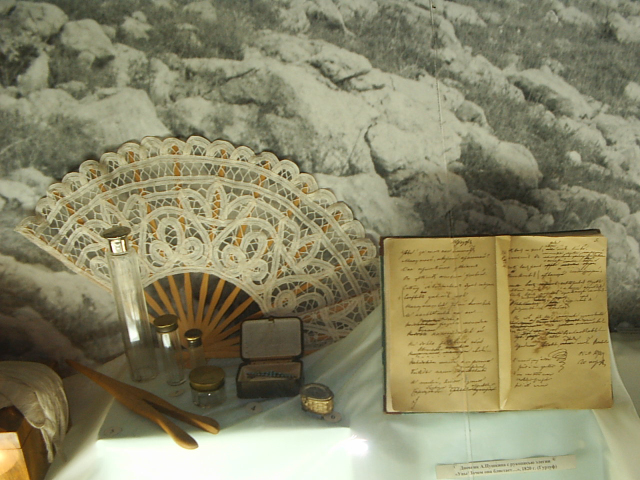 А шторм, кстати, разыгрался ещё сильнее, чем вчера. Люди лихорадочно сбегали с обжитых мест на бетонный пляж, но и там места было немного, в этот день мы сняли кучу видео об этой стихии, которое тоже можно просмотреть. Днём, мы разбавили экстрим посещением музея Александра Сергеевича Пушкина. Билеты оказались недорогими, значит, большинство людей смогут узнать много интересного о себе и о других. Здание музея располагалось в санатории Пушкино (что не удивительно), оно представляло собой первую европейскую постройку на Южном Берегу Крыма, дворец графа Ришелье, который, впрочем, сам в нём не жил, а жили там его друзья и знакомые, а также – Пушкин. Этот дворец ещё называли воздушным замком, потому что с моря казалось, что он стоит на облаках. Экскурсовод попался молодой разговорчивый и компетентный, всё нам рассказал очень хорошо, без него посещение музея не было б столь ярким. Я узнала, что этот самый воздушный замок состоит из трёх этажей, на третьем жил Пушкин, этот этаж имел красивое название «Бельведер», которое аналогично современному слову «Пентхауз». На втором этаже жили Раевские, а на первом – прислуга. Не буду рассказывать всю историю, которую услышала во время экскурсии, опишу лишь самое яркое, что имеет для меня интерес. Оказывается, мы с Александром Сергеевичем во многом похожи, я не имею в виду творчество, поскольку оно у нас различается, я говорю о чертах характера. Почерк у него был двух видов: официальный, каким он писал деловые бумаги и письма родным, там он старался писать красиво, но всё равно трудно было разобрать отдельные слова; и почерк «для себя», которым он писал свои шедевры, там полная неразбериха, как и у меня. Меня обрадовало то, что у нас был одинаково корявый почерк. Но это ещё не всё, он, как и я, не до конца интеллигентный и благородный и даже некий извращенец. Говорю я так не с целью обидеть великого писателя, а только потому, что он подглядывал за купающимися сёстрами Раевскими из оливковой рощи, жалкие остатки которой сохранились в санатории «Гурзуфский».