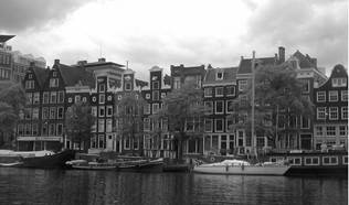 Очень яркие и живописные набережные Амстердама являются визитной карточкой всей Голландии. Шириной в 2-3 окна и высотой в четыре этажа, дома вдоль каналов в старой части города выстроены вплотную друг к другу и являют все разнообразие цветовой гаммы от темно-красного до коричневого, разбавленной белой окантовкой фасадов, окон и междуэтажных карнизов. По городским правилам, длина фасада не должная была превышать 8 м. Чем выше этаж, тем меньше его высота. На первых этажах таких домов жили хозяева, над ними прислуга, на последнем этаже была детская. У каждого дома свой отличительный знак, не похожий на другие, это позволяло определять нужный дом при отсутствии нумерации. Фасады венчают килевидные фронтоны с закругленными краями. Их фронтальная стена не вертикальна, а чуть наклонена наружу, это позволяло удобно поднимать грузы наверх и при этом не разбить окна.