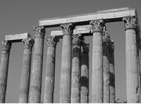 В центре города на вершине Акрополя парят на фоне синего южного неба силуэты самого знаменитого античного храмового комплекса, построенного, преимущественно, в дорическом ордере. Именно грекам принадлежит честь изобретения системы ордеров, применяемой в архитектуре. Существовало три основных ордера: дорический, пришедший из эпохи дорийского завоевания Греции, ионический, распространившийся в Ионии и на малоазийском побережье, в котором прослеживается влияние соседней Персии, и более пышный коринфский, впоследствии воспринятый римлянами. Все основные элементы ордеров имитируют деревянную постройку, воспроизведенную в камне, т.к. вначале греческие храмы строились именно из дерева, и лишь потом стали возводиться в камне. Элементы ионического ордера составлены из мелких брусьев, т.к. в Ионии было мало больших деревьев, а элементы дорического ордера – из крупных.