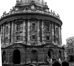 За Шелдонианским театром расположены здания Бодлианской библиотеки, основанной в 1610 г. и сейчас насчитывающей более 6 млн. томов. Над ее входом вздымается необычная квадратная башня «пяти стилей», демонстрирующая разные элементы, присущие пяти архитектурным стилям Англии – от романского до классического. Башня богато декорирована резьбой по камню, украшена статуями и колоннами. За библиотекой расположена ротонда камеры Редклиффа, построенной в 1749 г. в стиле классицизм и являющейся читальным залом библиотеки. В этой ротонде часто читал книги создатель «Капитала» Карл Маркс. Первый рустованный этаж с полукруглыми окнами, увенчанными треугольными фронтонами, несет на себе коринфскую колоннаду, над карнизом с балюстрадой на небольшом мощном барабане, укрепленном волютами – большой полукруглый купол с фонарем.