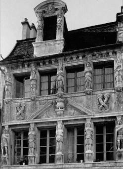 Двухэтажное здание дворца герцогов Бургундских с высокой квадратной башней – донжоном перестроено из средневекового замка, о котором напоминает парапет из треугольных зубцов, оканчивающихся лилией, опоясывающий крышу. Парадный трехэтажный фасад дворца был перестроен в 17 в. в классическом стиле. Три его ризалита украшены треугольными четырехколонными портиками, фланкированными большими скульптурами на крыше. В интерьере дворца, где сейчас разместился музей искусств, особый интерес представляют гробницы Филиппа Смелого и Иоанна Бесстрашного, декорированные скульптурными процессиями плачущих женщин работы знаменитого дижонского скульптора Клауса Слютера.