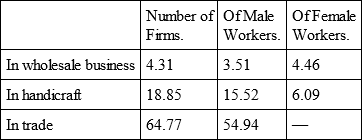 But in general it cannot be disputed that the need for regulation may also exist in trading and in handicrafts, e. g. in bakeries (not machine-worked) no less than in household industry. Here we often find that the working hours are of longer duration than in factories and workshops. In Berlin, figures have been obtained showing the percentage of firms in which the working-day is more than 11 hours; and the percentage of female and of male workers employed for more than 11 hours.