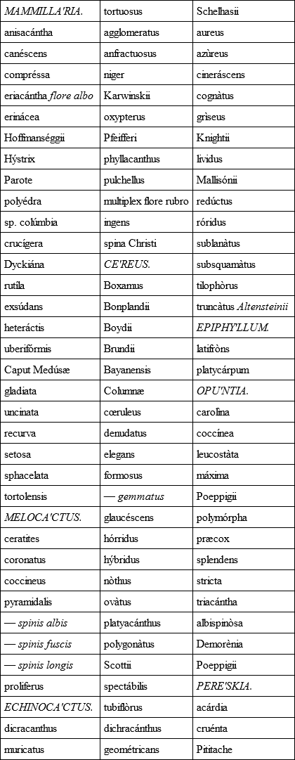 The following species of Cacteæ are daily expected from Germany, but whether they will prove distinct from those in the preceding pages, I am unable to determine until the plants arrive at Woburn Abbey.