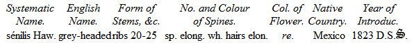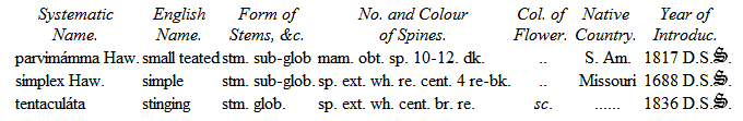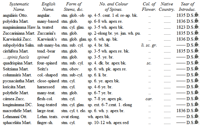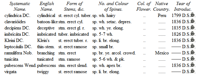 The Cacteæ have not hitherto obtained in this country that attention which is paid to them on the continent, where certainly a greater number of fine specimens are to be found of this interesting genus than is to be seen in our collections.
