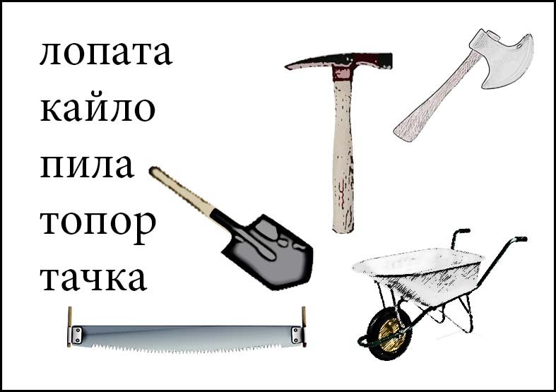 Опознай инструменты, соедини правильно название и картинку. Расскажи, что делали, по-твоему, этим инструментом при строительстве железной дороги.