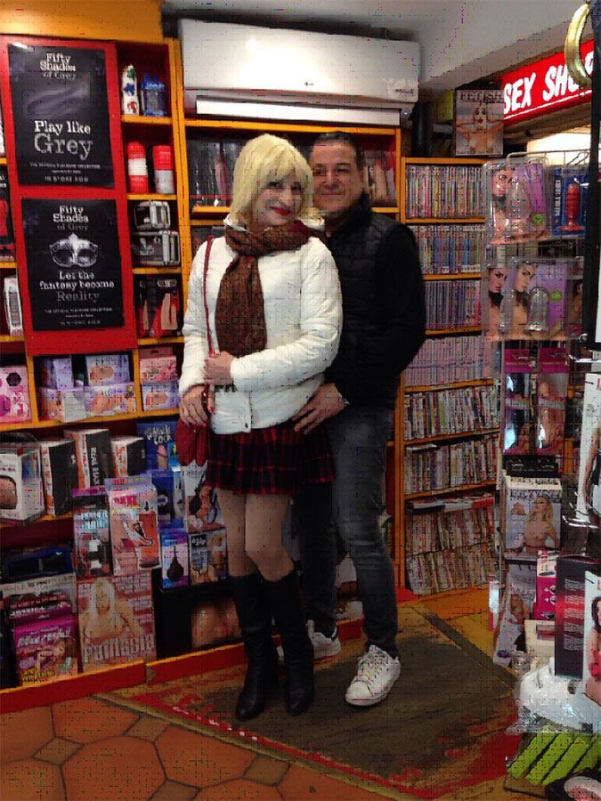 Вспомнилась родная Москва! Там тоже если мне и сигналят – то исключительно с позитивными эмоциями!))). А тут даже в окно высовывались и радостно кричали, и приветственно махали руками. Как же сильно в Европе городские районы отличаются, словно разные страны!.. Там подвезти не могут, а тут – фанфары… Анечка даже злилась иногда – "блин, что, красивых женщин никогда не видели?")) Может и видели, Анечка, но таких как я – ещё нет.)) Дальше по дороге попался очередной маленький секс-шоп, в который мы зашли. Хозяин, то ли итальянец, то ли югослав – так и извивался вокруг меня. То одно покажет, то другое даст в руках подержать и погладить… При этом сам не забывает меня то приобнять, то немножко прижать к себе, и ручку погладить… Мне, естественно, его внимание и нежность понравились. Когда Вика спросила разрешения пофотографировать в магазине, он сам прижался ко мне в процессе, и сам показал, что хочет сфотографироваться со мной вместе. Ну я была не против, и получились интересные снимки. Честно, до сих пор помню его нежные руки у себя на бёдрах и шее…))