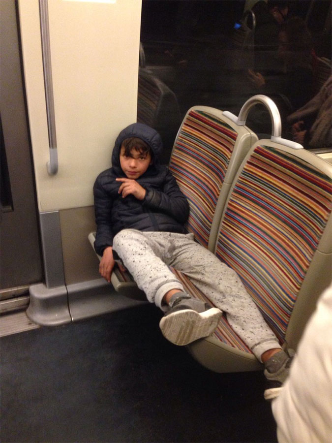Вечер воскресенья парижское метро не то чтобы забито, как утром в будний день, но и полупустым, как вечер воскресенья в Москве, его не назовёшь. Свободных мест нет, пол вагона стоит на ногах. Видимо, парижане любят погулять по вечерам. По воскресеньям.