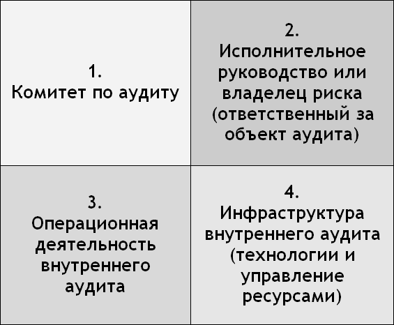– должностные лица ответственные за аудируемый объект (бизнес-процесс или показатели управленческой отчетности). Это, как правило, менеджеры высшего звена (руководители отделов, департаментов), директора;