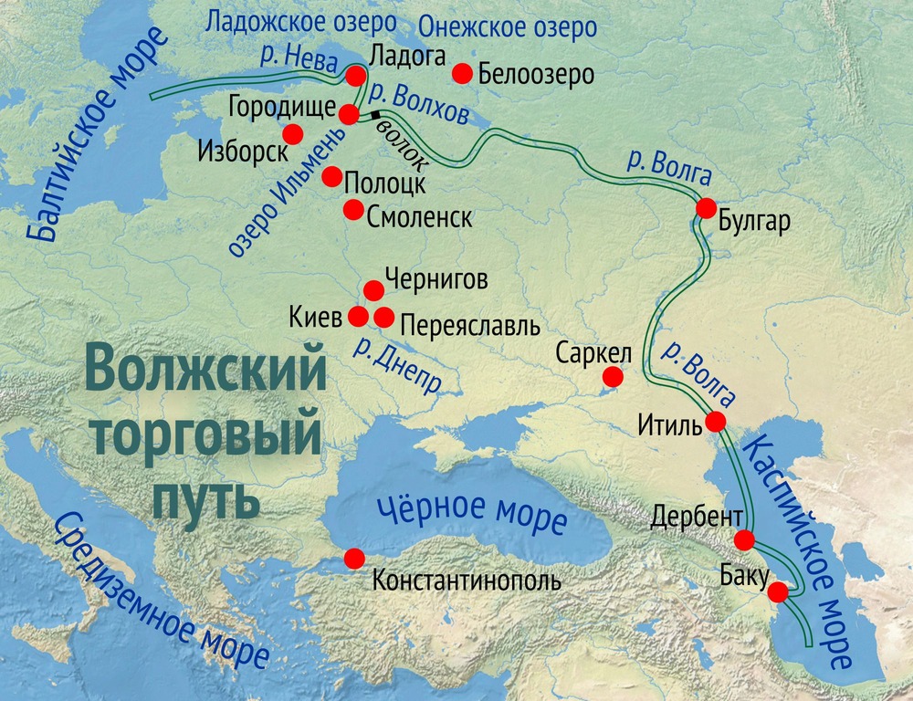 Волжский торговый путь, он же «из варяг в арабы», который стал постепенно всё больше и больше контролироваться Русью, являлся альтернативой древнему средиземноморскому морскому маршруту с Востока в Балтику. Который, к тому же, становился всё более опасным из-за засилия пиратов.