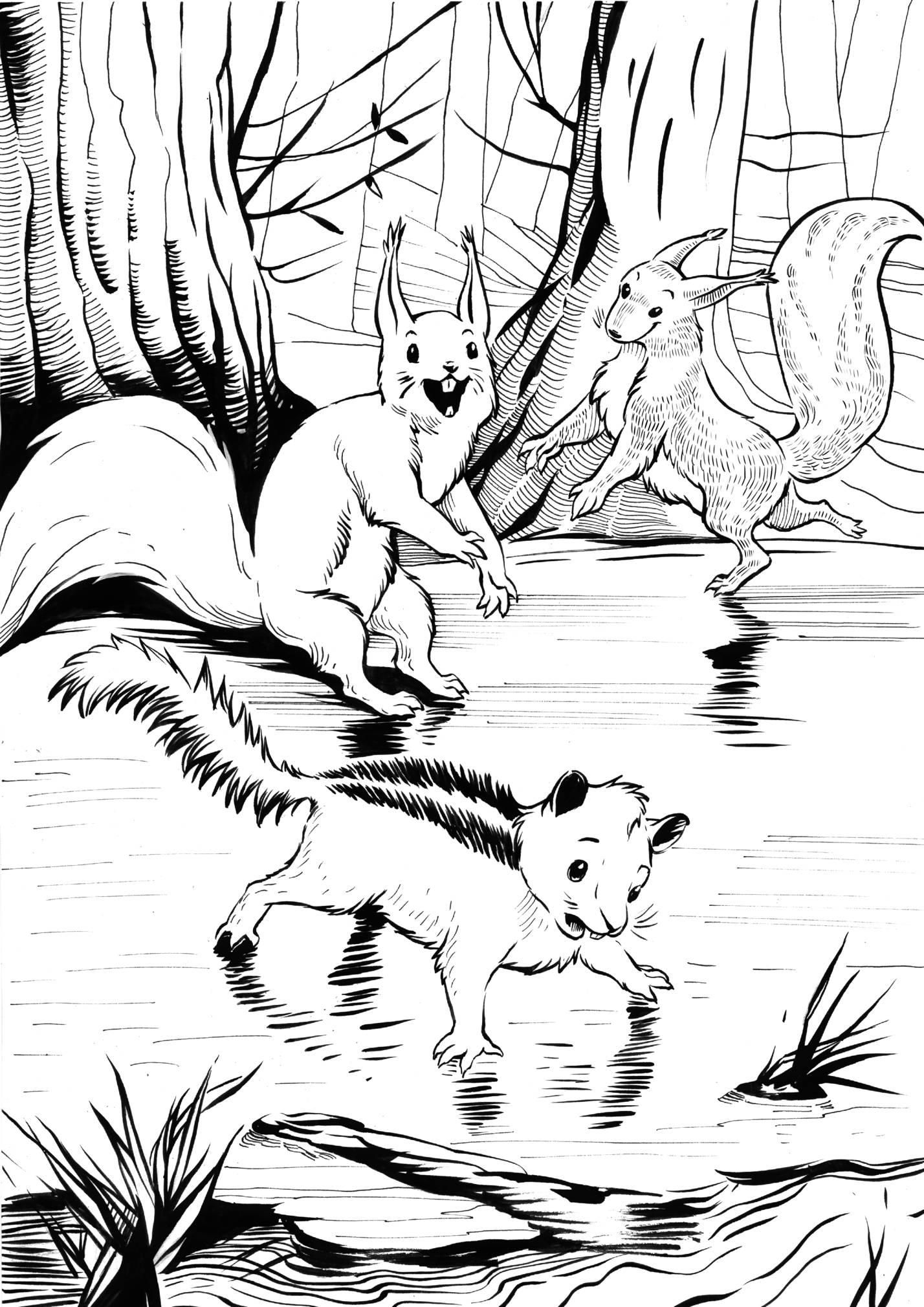 – Ну, держись, Прыг! – пискнул Сим и помчался за бельчонком. Тот, цокая, пустился наутёк.