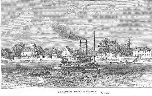 Passing over to America, we shall first describe the famous American and Canadian river steamboats, which are in many respects as curious and unique as they are generally magnificent. These steamers are usually paddle-boats; are very long and narrow in shape, but of great strength. On the hull a sort of lofty platform is built, which is divided into what may be called the middle and the main deck, one above the other. Fore and aft there is a spacious, luxuriously appointed, and richly decorated saloon, covered in with a glass roof.
