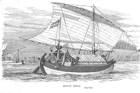 Nothing afloat, probably, can go so close to the wind as the flying-proa, while its speed is astonishing. The Malays use the proa, but theirs is a broader, heavier, and less swift boat than that used by the Ladrone islanders of the Pacific, which is that which we have just described.