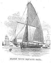 The distinctive peculiarity of the sloop is, that it has but one mast; and its rig is, nautically speaking, fore-and-aft—that is to say, the sails are spread with their surfaces parallel to the sides of the vessel, not stretched upon yards across the vessel. The term “fore-and-aft” is derived from the forward part and the after part of the ship. Fore-and-aft sails, then, are such as are spread upon yards which point fore and aft, not across the ship. We conceive this elaborate explanation to be necessary for some readers, and, therefore, don’t apologise for making it. A ship whose sails are spread across the hull is said to be square-rigged. Sometimes, however, a sloop carries one and even two square sails.