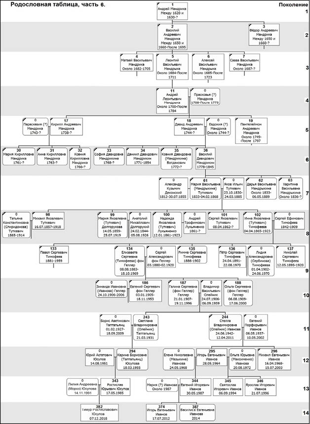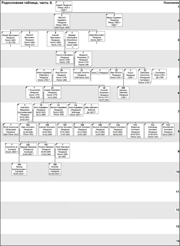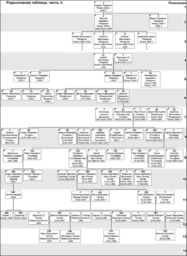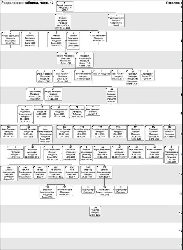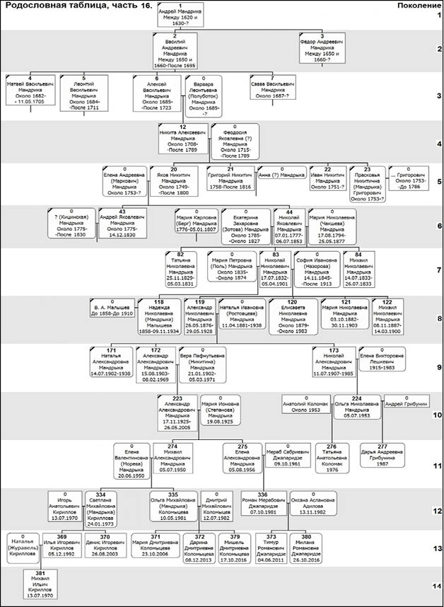 Сын: Никита Алексеевич Мандрыка (около 1708 – после 1789) (12-6)