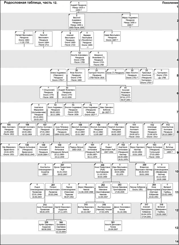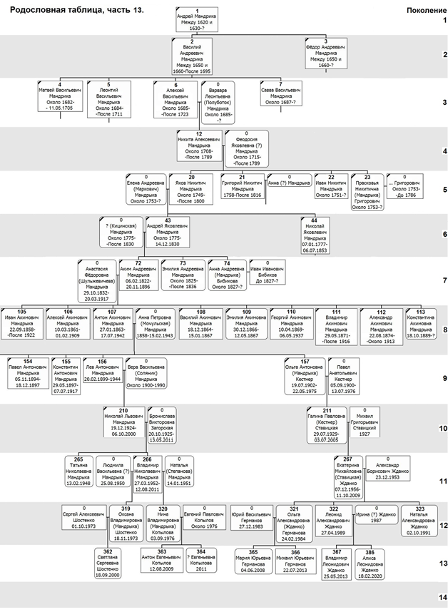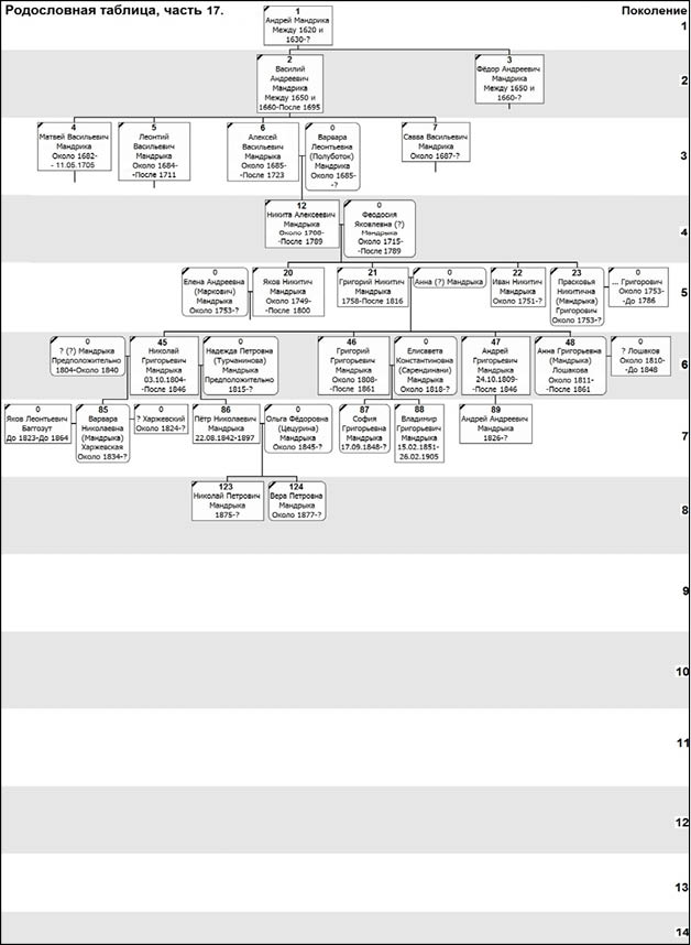 • Родился: около 1685, Кобыжча. Отец: Василий Андреевич Мандрика (2-1).
