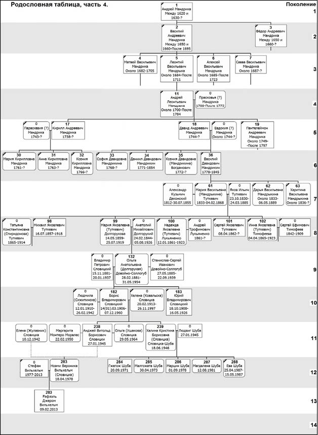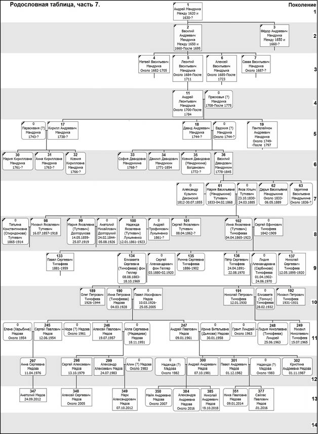 Дочь: Анастасия Матвеевна Мандрика (около 1704 – ?) (10-4)