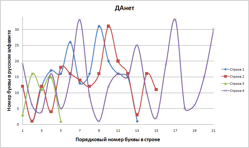 В этом стихотворении собраны сразу несколько вариантов нелинейной поэзии: 1. Двуязычие. Русский язык переплетается с тюркским наречием («йок» – это «нет» на ряде языков тюркской группы). 2. Часть текста записана дробью. Выбирая между числителем и знаменателем, читатель может составить разные тексты. 3. Запись текста в виде графика. 4. Дробное написание придает графику новые свойства. В результате на графиках в первом приближении проявляется слово, знакомое каждому человеку с детства.