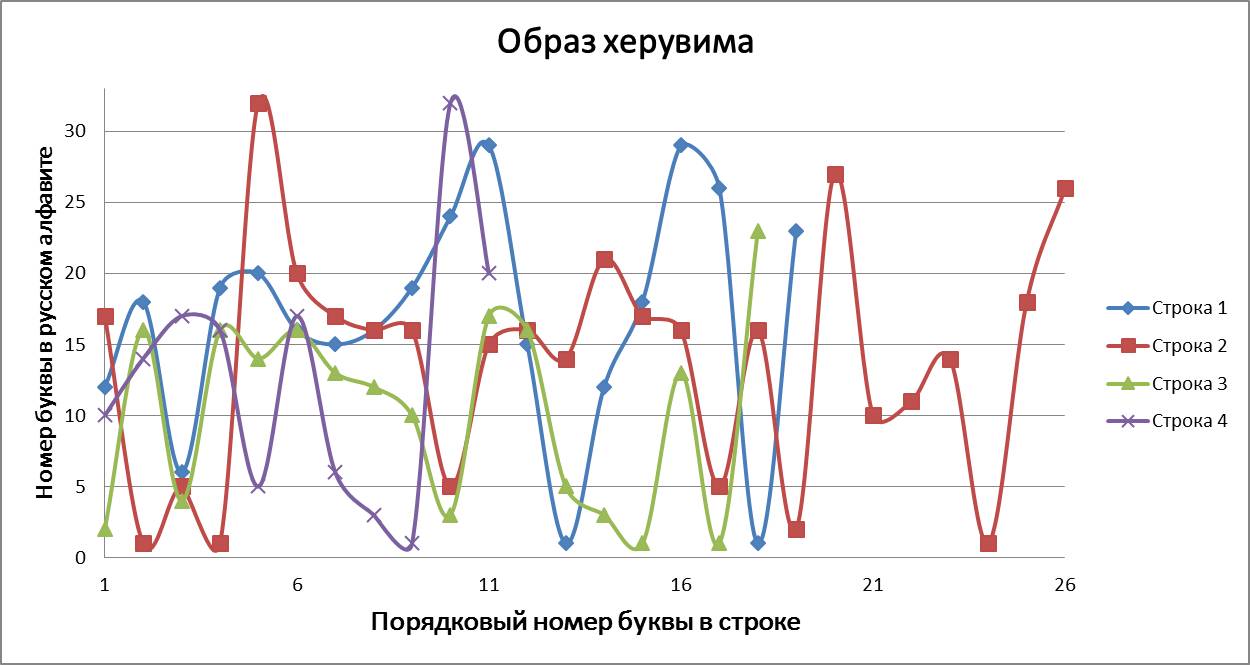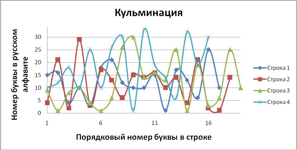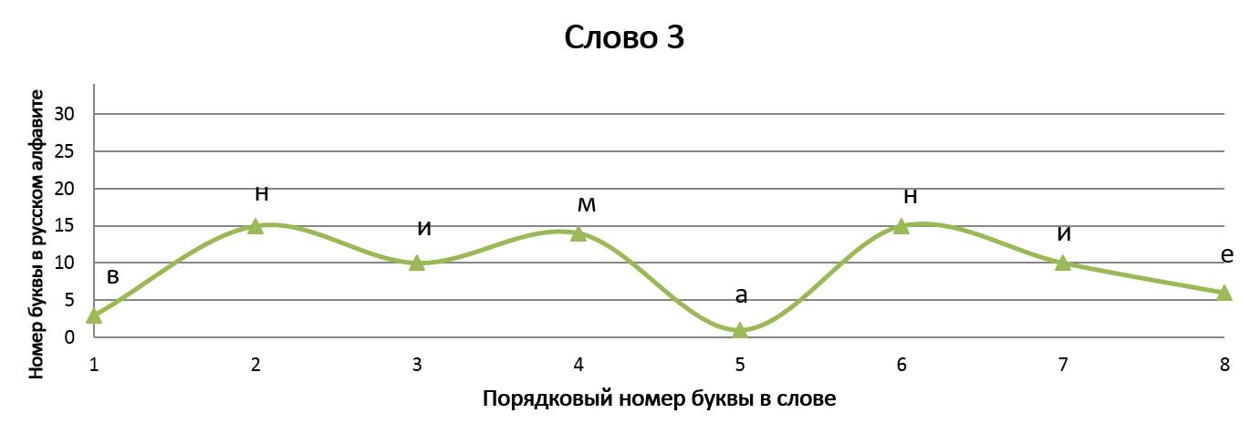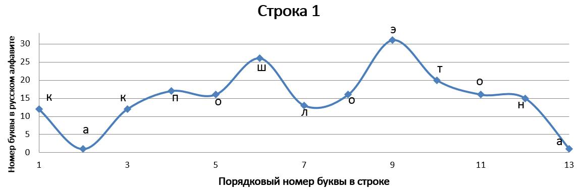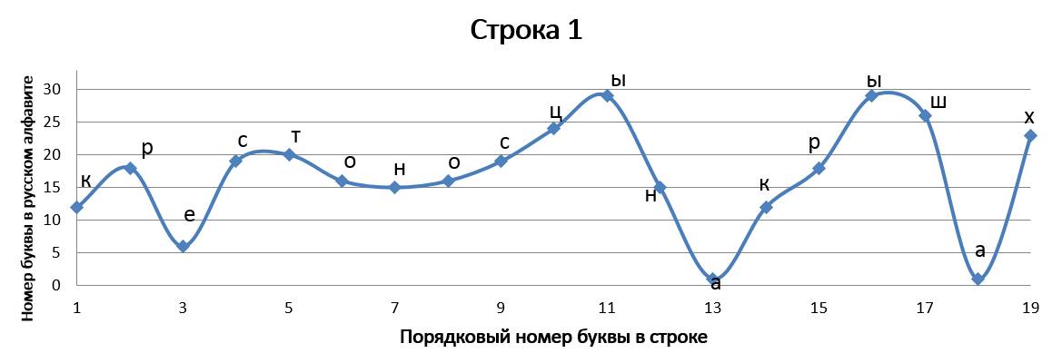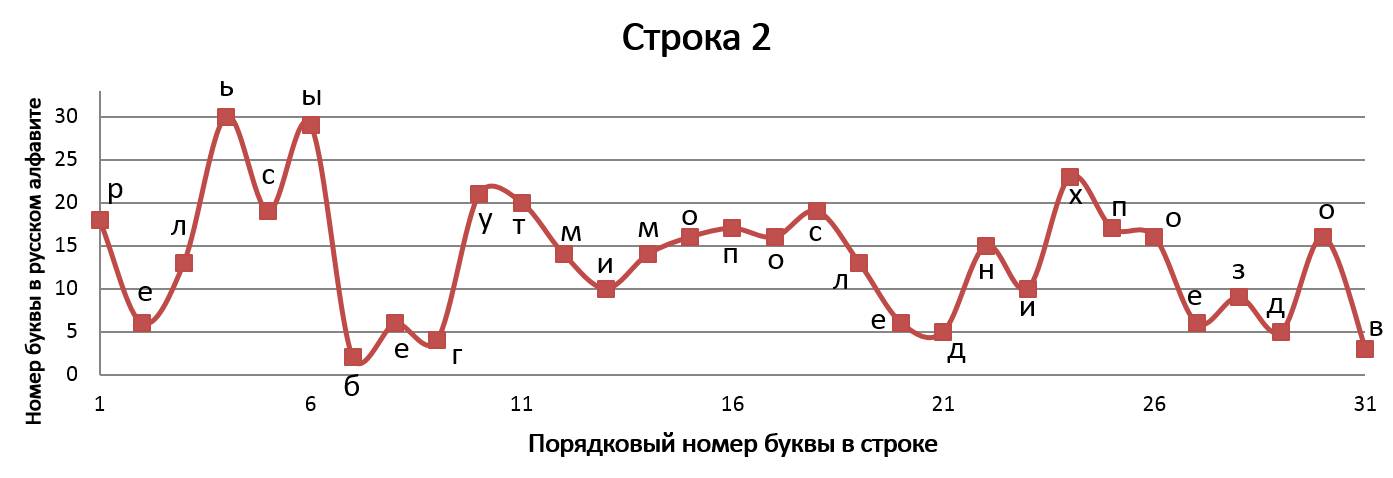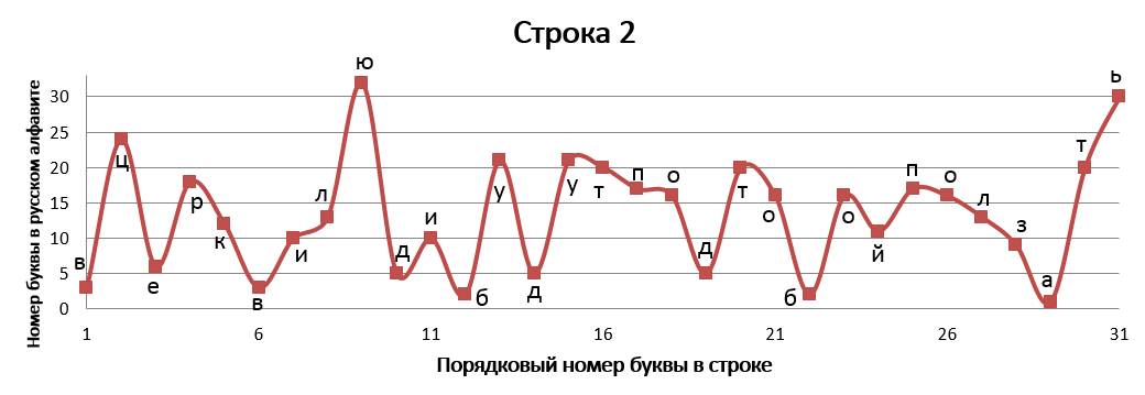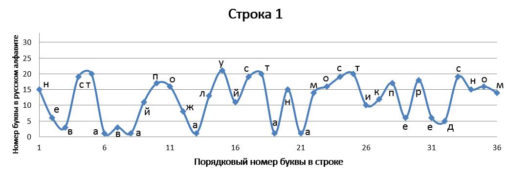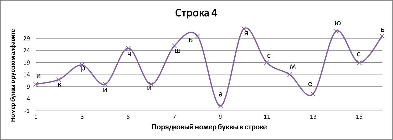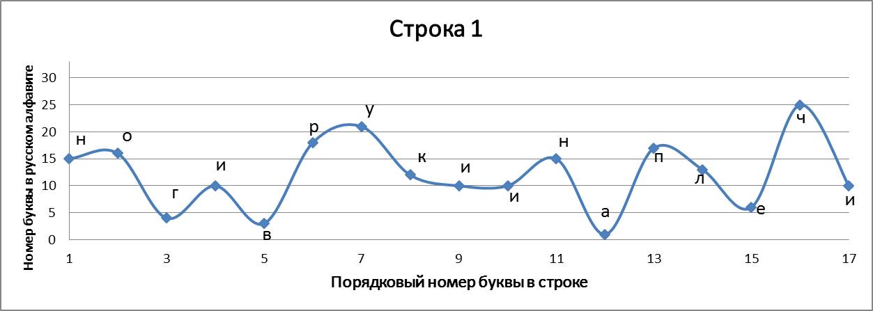 В «Графических стихотворениях» представлена попытка объединить поэзию с математикой и музыкой одновременно. Каждая строчка стихотворения записана в виде графика и каждой букве соответствует своё законное место. По оси абсцисс отложен порядковый номер буквы в строке, а по оси ординат – порядковый номер буквы в русском алфавите. Таким образом, мы видим математическую запись стихотворения, напоминающую нотную грамоту (в нотной грамоте вертикальная позиция ноты определяет высоту её звучания, а горизонтальная – порядковый номер ноты в музыкальном произведении). Кроме того, каждое записанное в виде графика стихотворение индивидуально и неповторимо, хотя каждая отдельно взятая буква не может выйти за пределы установленных рамок, что указывает на их родственную связь с маятником метронома, совершающим колебания только в определенных границах, всегда повторяющимся, но повторяющимся уникально.