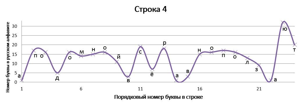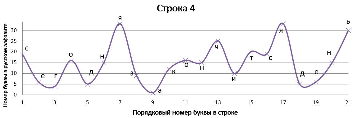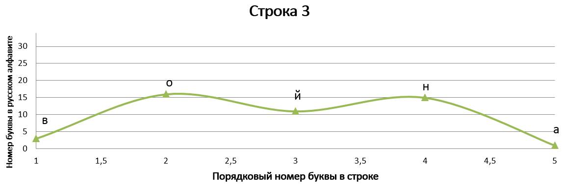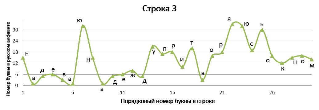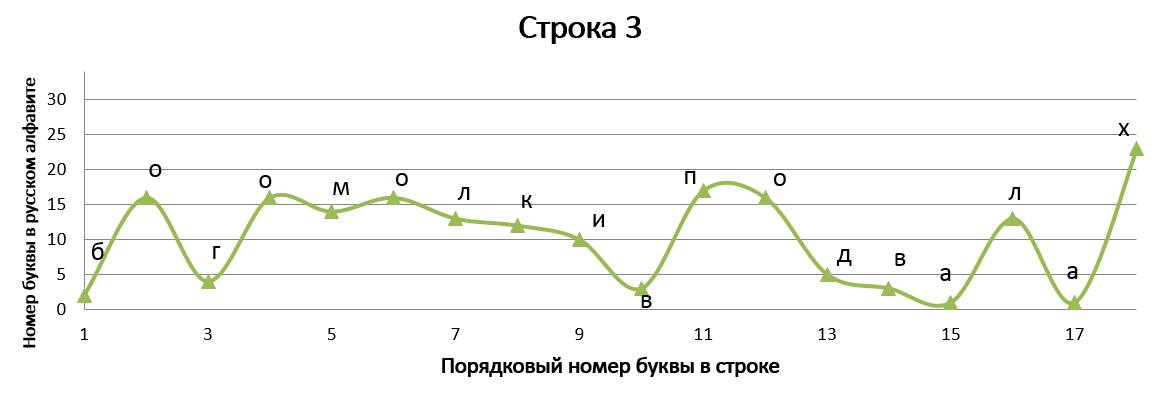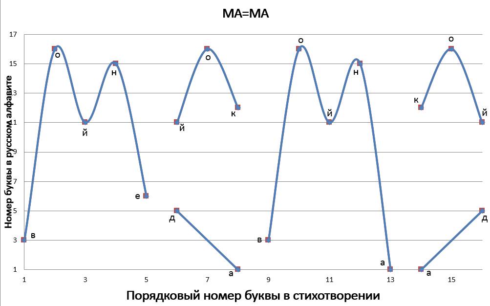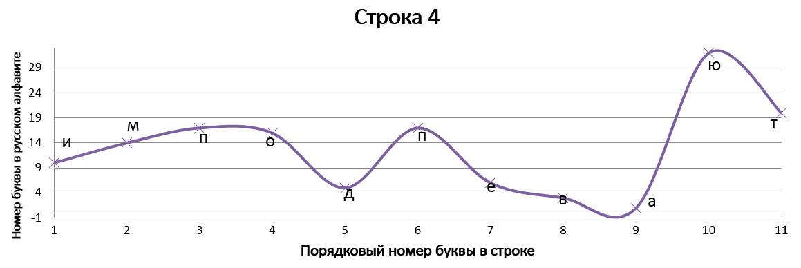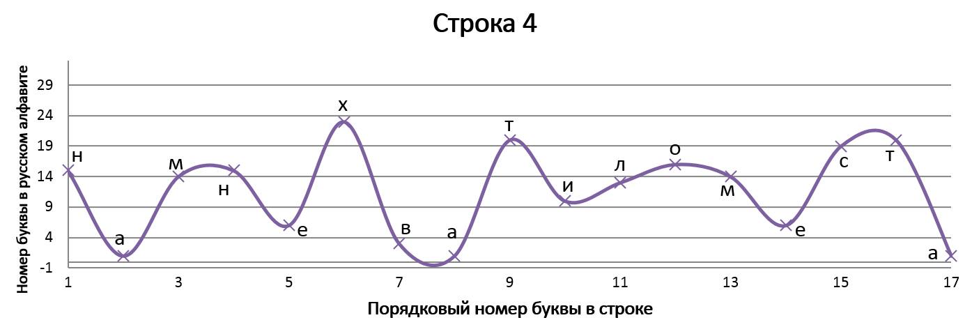 Данное стихотворение замечательно тем, что в трёх строках идёт одинаковое окончание, благодаря чему мы имеем идентично заканчивающиеся графики, но со сдвигом на единицу относительно друг друга. ⠀