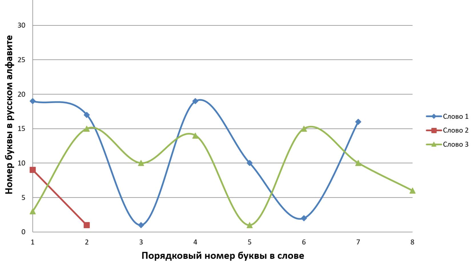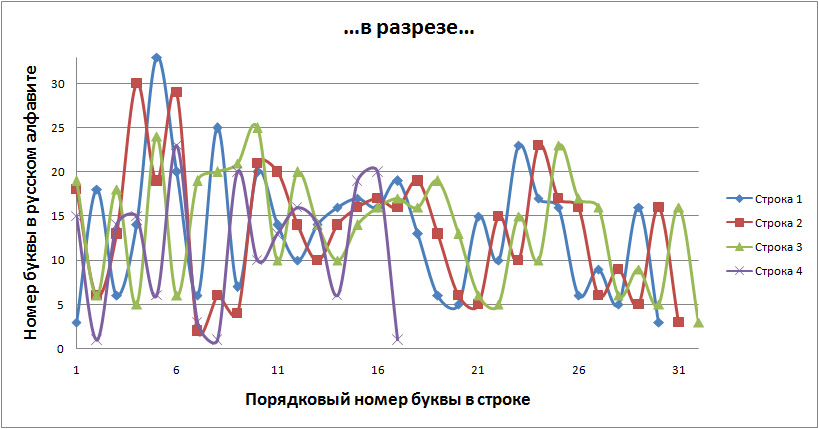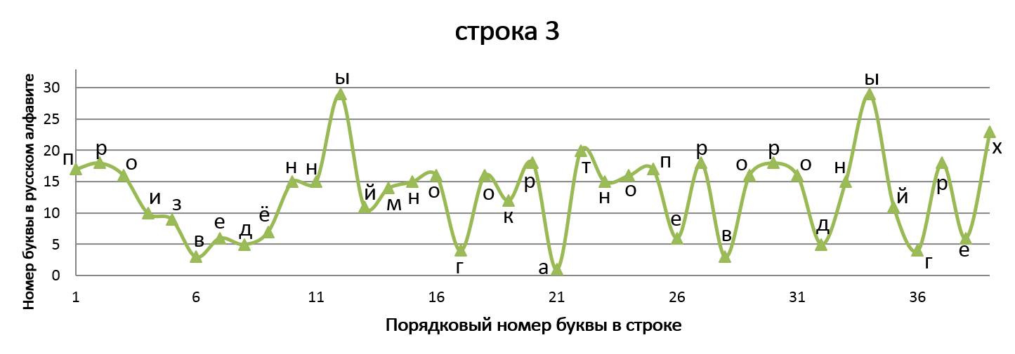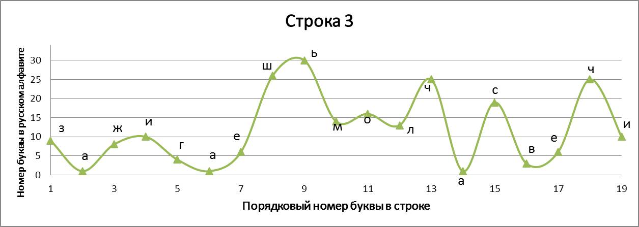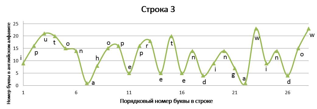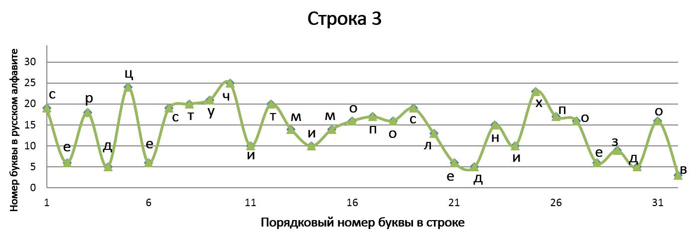 Данное стихотворение замечательно тем, что в трёх строках идёт одинаковое окончание, благодаря чему мы имеем идентично заканчивающиеся графики, но со сдвигом на единицу относительно друг друга. ⠀