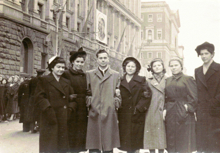 Здесь же, в общежитии, зимой 1952 года мы с ним встречали членов нашей группы, которых Борис вызывал, чтобы вручить выданную дополнительно за 4 месяца нам повышенную стипендию в размере 700 с чем-то рублей тем, кто получал стипендию, и 2000 с чем-то тем, кто сдал экзамены на тройки. Это было незабываемое зрелище, когда человек приезжал на занятия и, вдруг, ему вручалась довольно большая по тем временам сумма. Почти со всеми мы тут же шли в кафе напротив института обмывать это дело. (И я, заодно примазывался к этому делу – конечно, мы не пили, как сейчас, и дело иногда обходилось одной шоколадкой или реже бутылкой красного вина).