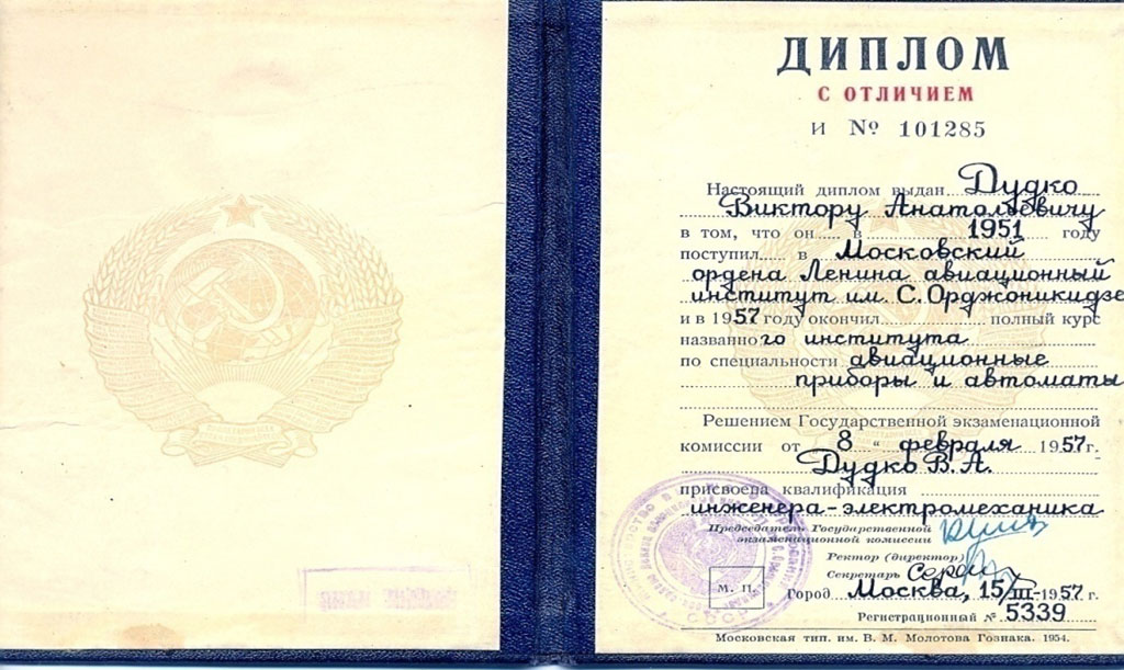 Считаю, что знания, полученные в институте, заложили в моих мозгах основательную информационную базу и дали мне путёвку в науку, не раз помогали в работе, о чем я всемерно благодарен преподавателям МАИ. Я мечтал об этом институте ещё со школьной скамьи и счастлив, что поступил и окончил его, несмотря на многие трудности…