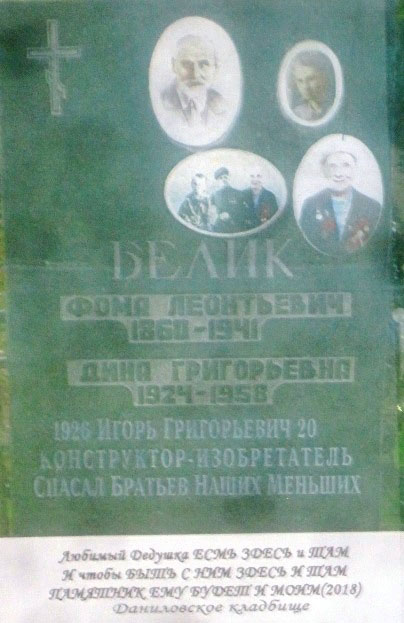 Но больше всего нас потрясла фотография памятника на могиле Даниловского кладбища.