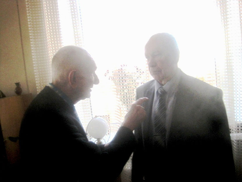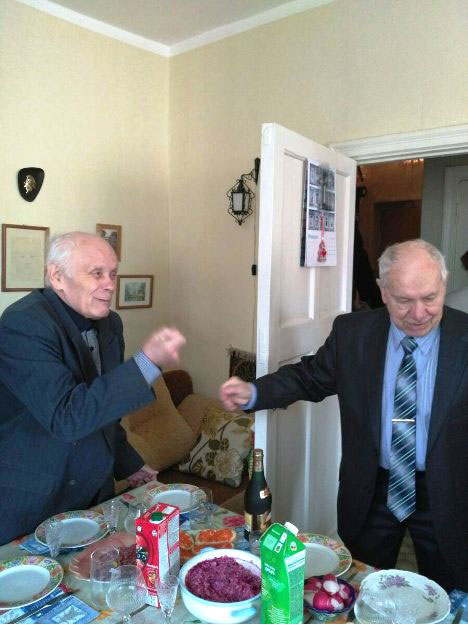 Глядя на эту фотографию можно предположить, что я и Борис танцуем. На самом деле мы, перебивая друг друга рассказывают эпизод из нашей совместной жизни в общежитии, когда Борис уступил половину койки мне и нам приходилось довольно длительное время спать вместе.