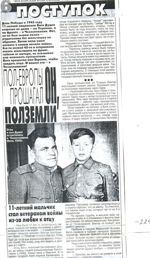 Статья в Московском Комсомольце называлась – «ПОСТУПОК» с подзаголовком: «ПОЛ-ЕВРОПЫ ОН ПРОШАГАЛ, ПОЛ-ЗЕМЛИ».