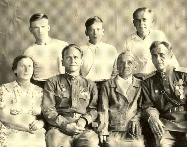 На фотографии – в нижнем ряду: Екатерина Фёдоровна и Михаил Евстафьевич, мама всех братьев Дудко (моя бабушка) и мой отец – Анатолий Евстафьевич.