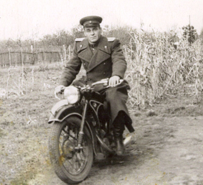 Мой отец возвратился из Германии в Брест, где он купил полдома. Он вызвал меня к себе в Брест. Здесь я научился ездить на мотоцикле BMW. Мне сшили костюм у портного, где-то под Брестом, в деревне, куда мы с отцом ездили на мотоцикле.