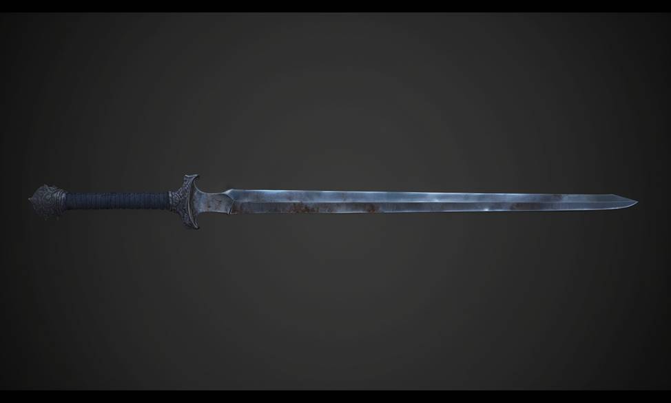 Клинок был обоюдоострый, весь покрытый ржавчиной, но местами можно было заметить хорошо обработанный и крепкий металл. Это сколько ему надо было тут проторчать, чтобы он покрылся ржавчиной? Не суть. Странность этого меча была в том, что на кончике одна кромка меча была чуть тоньше другой и совсем чуть-чуть загнута в сторону большей. Это придавало оружию немного экзотический вид, добавляло ему уникальности. Но это всё ещё оставался тот же обычный клинок.