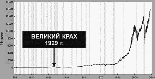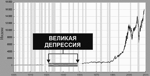 О: – Чтобы ясно увидеть будущее, лучше всего заглянуть в прошлое. На графике, который мы только что рассмотрели, вы можете увидеть прошлое, в частности событие, отмеченное крахом фондового рынка в 1929 году и вошедшее в историю под названием Великая депрессия.