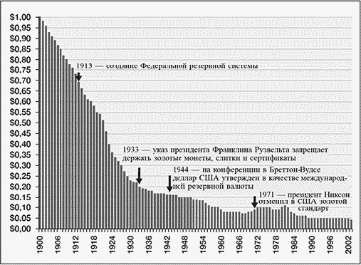 Доллару потребовалось около ста лет, чтобы потерять 95 процентов своей покупательной способности. Лично я сомневаюсь, что для потери оставшихся 5 процентов понадобится еще 100 лет.