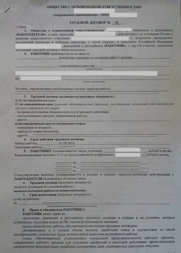 Следующее на что стоит обратить внимание, это оплата труда. Очень часто в договоре в договоре прописывается окладная часть, а большая часть вашей зарплаты будет указана как премиальная часть. Уточняйте сразу каким образом будет начисляться эта часть вашей зарплаты, что бы в будущем для вас не стало неожиданностью.