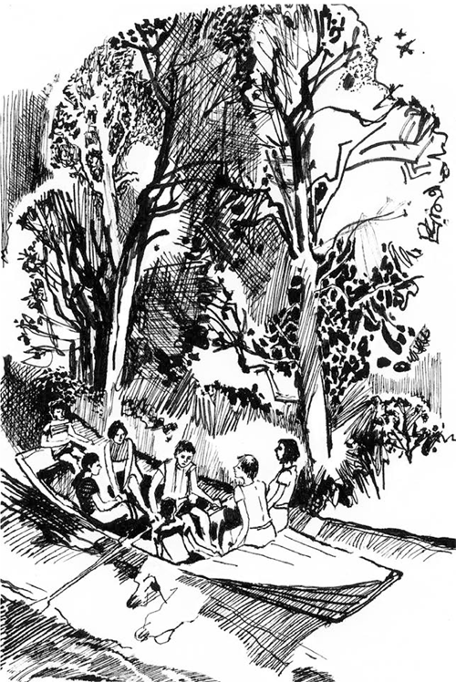 Как всегда, к вечеру я вышел на берег и замер от удивления: влажная мягкая тишина лежала повсюду, на всей сумеречной земле. Противоположный берег млел в пепельно-голубом тумане и затопленные дубы там как будто сладко дремали, застыв по колено в воде. Отчётливо донеслось оттуда, как где-то за дубами опустились утки, самих же их не различить уже было… Под горой потрескивал костер, на песке возле него стояли мои одноклассники, глядели в огонь и о чём-то тихо переговаривались. Искры взвивались над их головами, тонкими золотыми дугами спускались к воде, двоились в ней и гасли. Неожиданно все кинулись от костра, тонко зазвякала лодочная цепь, и уже пошли, покатились во все стороны от лодки волны… А в ней смеялись, вскрикивали, толкались.