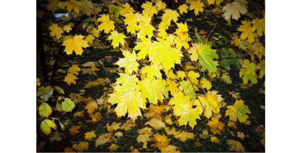 Сошёл листопад на поверхность пруда,у берега чуть зеленеет вода,а жёлтые листья поодаль, на кронах(на их очертаньях, в воде отражённых), —как будто на легком и прочном плоту…Те листья – живые: они – на плаву.