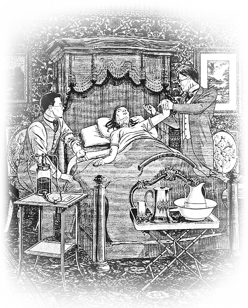 – Так я и знал, – пробормотал он. Затем, не говоря ни слова, он закрыл дверь и начал выкладывать инструменты для новой операции переливания крови. Я уже давно сознавал необходимость этого и начал снимать свой сюртук, но он остановил меня жестом руки.