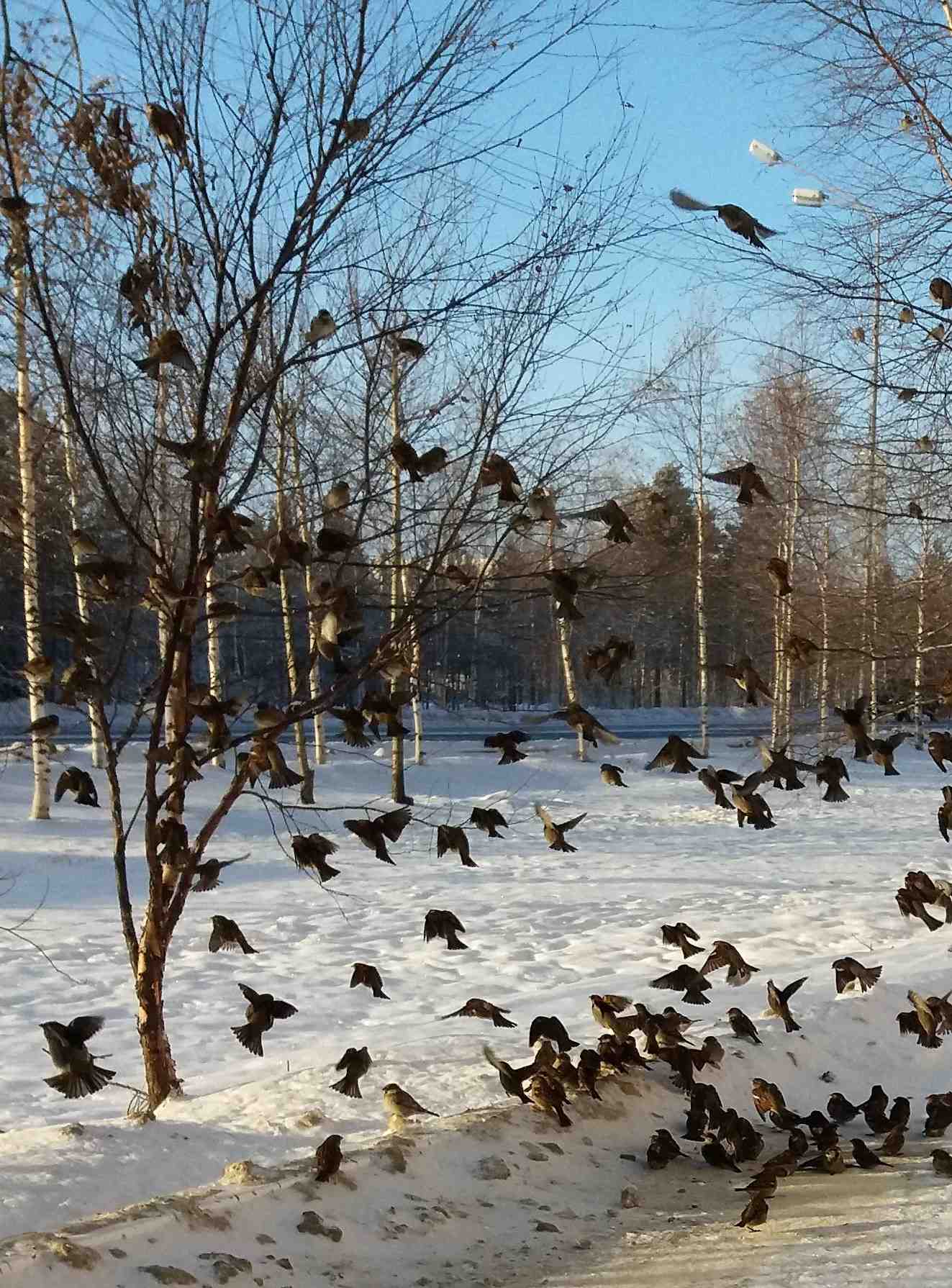 Птицы сидели возле церкви и оживленно вокализировали. Тут было и пение, и чириканье, и карканье, и щебет, и свист… Звуки, издаваемые птицами, были разными, как и сами птицы. Кто-то бы сказал: какие набожные птицы. Но внимательный взгляд разглядел кормушку.
